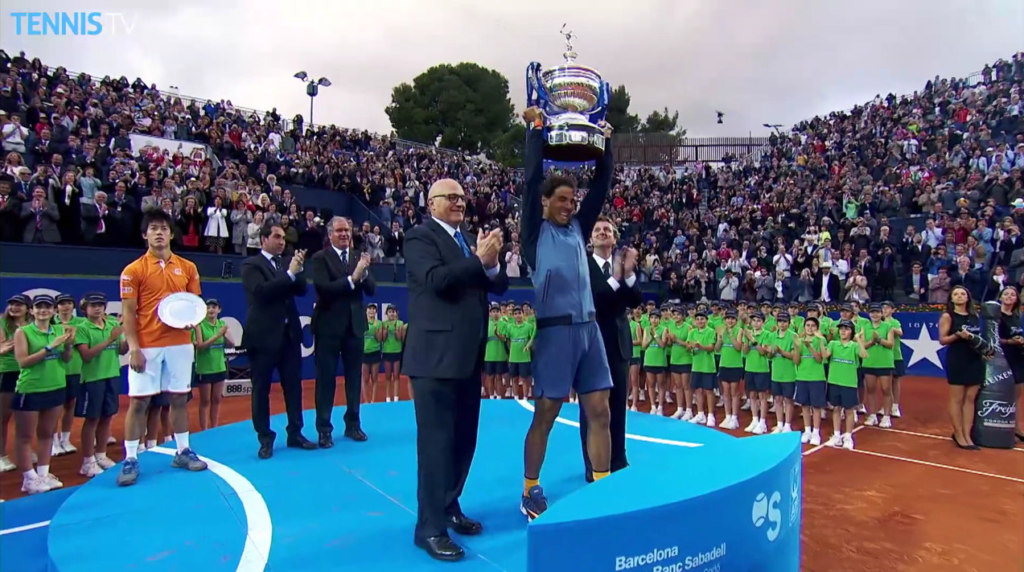 Albert Agustí, então presidente do Real Club de Tenis Barcelona, Albert Costa, o diretor do torneio de 2016, e Carlos Godó, legítimo representante do Conde de Godó, entregaram a Koch uma réplica do troféu.