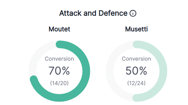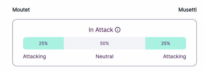 Moutet in ogni caso è deciso a giocarsi le sue carte e oggi estremizza quelle variazioni che pure sono nelle sue corde. Veramente deliziosi alcuni tocchi che mandano in confusione perfino un giocatore come Musetti, che di certo non possiamo definire monocorde. A metà primo set sono più le variazioni dei dritti e rovesci giocati in top. Riportiamo la statistica perchè è un qualcosa che negli anni 20 del secolo XXI si vede molto raramente.