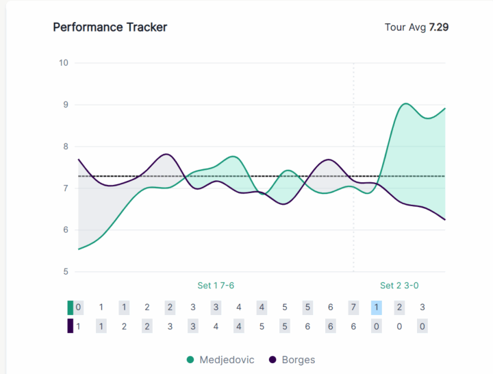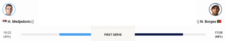 L’aspetto forse preoccupante per Borges in questo scorcio di match è che nonostante la percentuale di prime molto bassa del serbo non sia riuscito ad organizzare niente di serio in risposta.