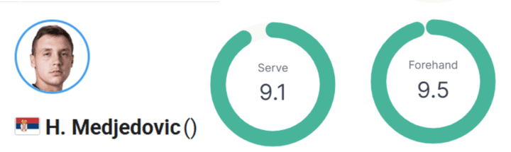 Tie break nel quale Medjedovic ha fatto valere il peso delle sue armi principali, ovvero i colpi più incisivi in campo in questo match: servizio e dritto. Limitandoci ad esaminare la qualità dei colpi in questo tie break ecco cosa emerge dal lato di Medjedovic.