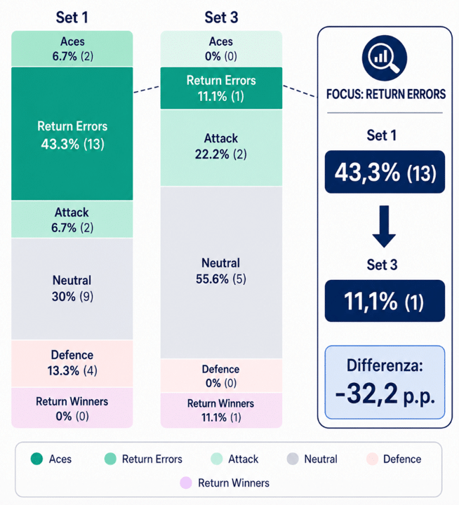 Fonte: Analysis by TennisViz; Data provided by Tennis Data Innovations – First serve effectiveness Fonseca, set 1 vs set 3 comparison