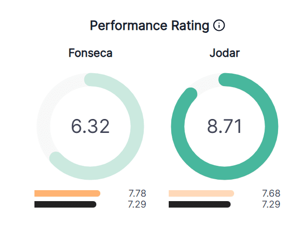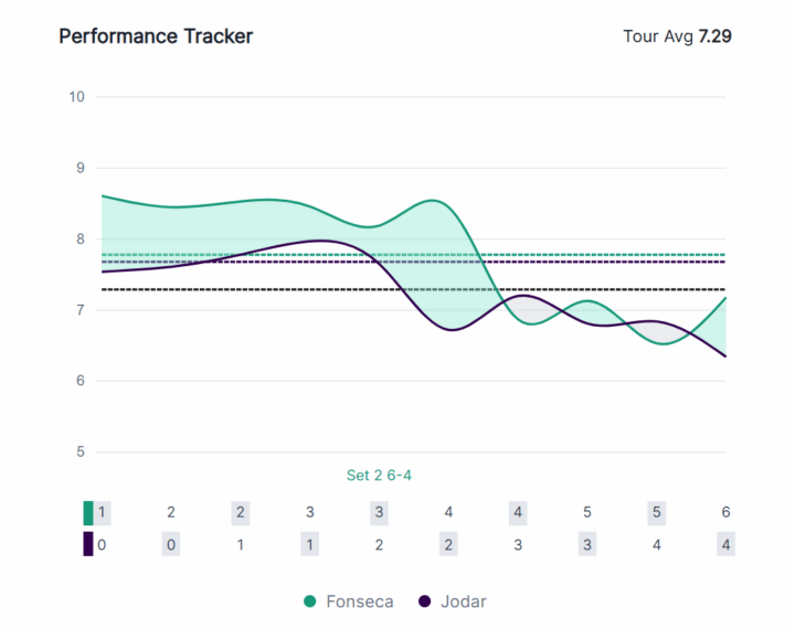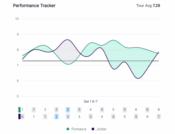 Nel terzo parziale Jodar è salito in paradiso, con una performance sintetica che sfiorava la perfezione, pari a 9,6, contro una media ATP di 6,4.