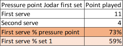 Fonte: Analysis by TennisViz; Data provided by Tennis Data Innovations – Second serve effectiveness Jodar, set 1 vs set 2 comparison