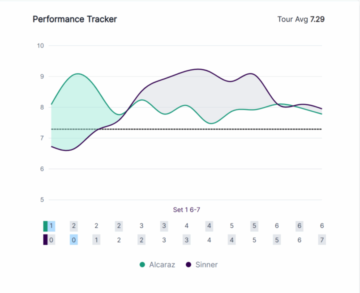 Come si può vedere le cose cambiano parecchio. Lo spagnolo quando contava ha venduto estremamente cara la pelle, con una performance strepitosa quando ha messo la prima di servizio, e un andamento comunque più che positivo sulla seconda. Alcaraz si è quindi trovato a dover giocare ben 21 punti sotto pressione, contro i 16 di Sinner. La differenza l’ha quindi fatta l’attrito che ha messo in piedi Jannik, che alla fine ha logorato Alcaraz, che ha finito per perdere il tie break