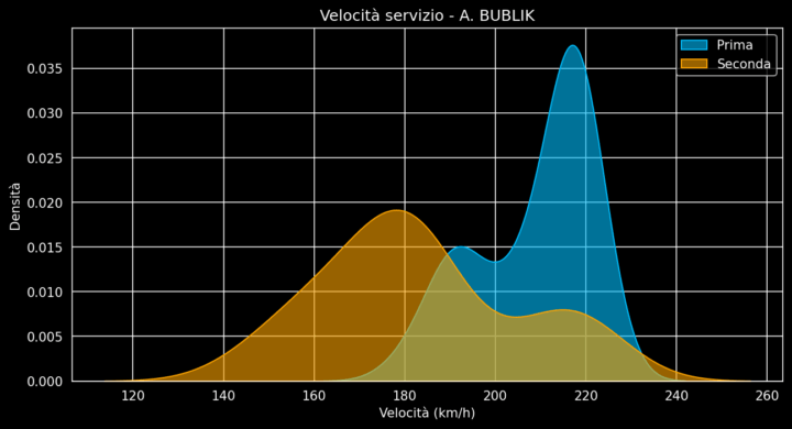 Fra l’altro, i game in cui Sinner è riuscito a fare il break, cerchiati in verde, sono fra quelli in cui il giocatore kazako ha servito meglio.