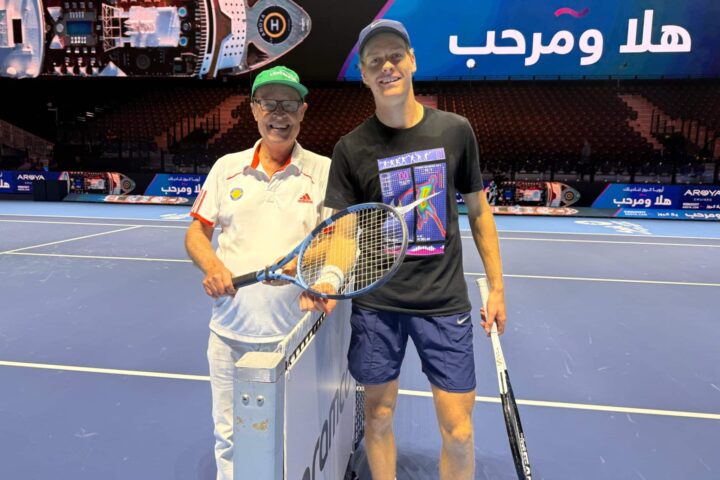 Non solo penna e taccuino, A Riyad il direttore ha portato con sé anche la racchetta, scherzando con Jannik: “Se mi fai giocare due minuti aggiungo un n. 1 del mondo alla mia collezione, ho già giocato con sei numeri 1!“. E Sinner, prima di cominciare l’allenamento con Fritz (arrivato all’aeroporto lunedì sera insieme a Ubaldo), ha ribattuto: “Ma io non sono più numero uno!“.