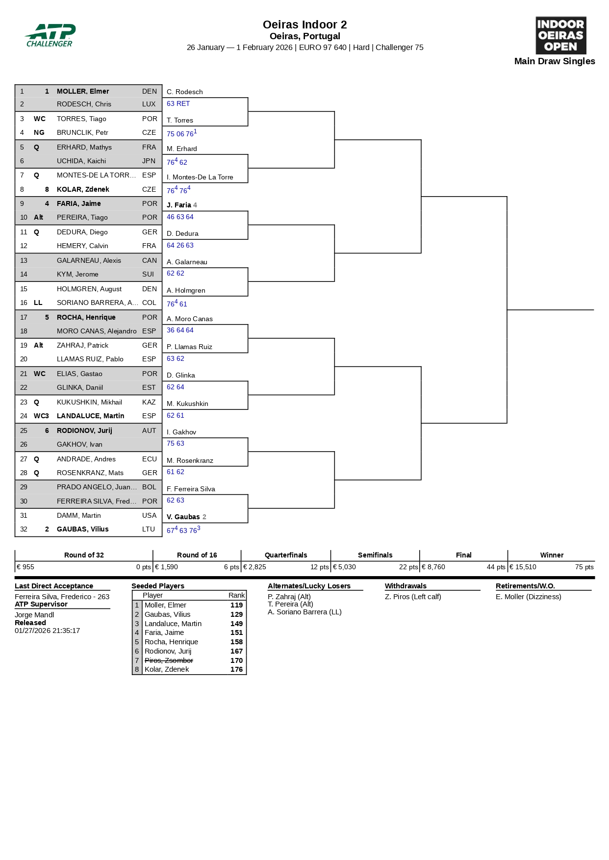Moller não só era o mais cotado da prova, como é o estrangeiro com mais sucesso nos torneios Challenger em solo nacional nos últimos anos, fruto dos títulos conquistados no Braga Open em 2024 e do Oeiras Open 125, também no Jamor, mas em terra batida, e do Maia Open do ano passado. Dores no estômago e tonturas foram o motivo do abandono do dinamarquês de 22 anos.