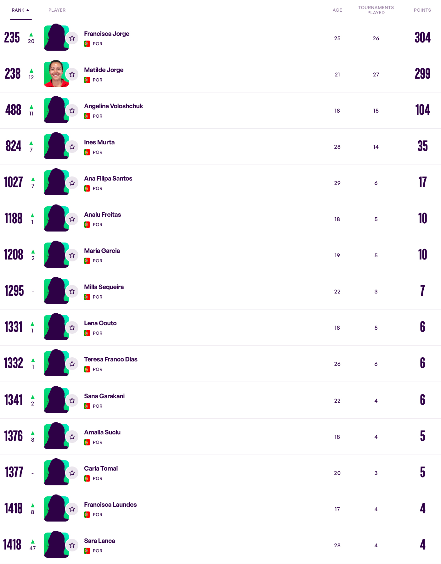 Quem também ganhou posições foi Angelina Voloshchuk (+11), novamente a celebrar a melhor classificação de carreira ao alcançar a 488.ª linha da tabela.