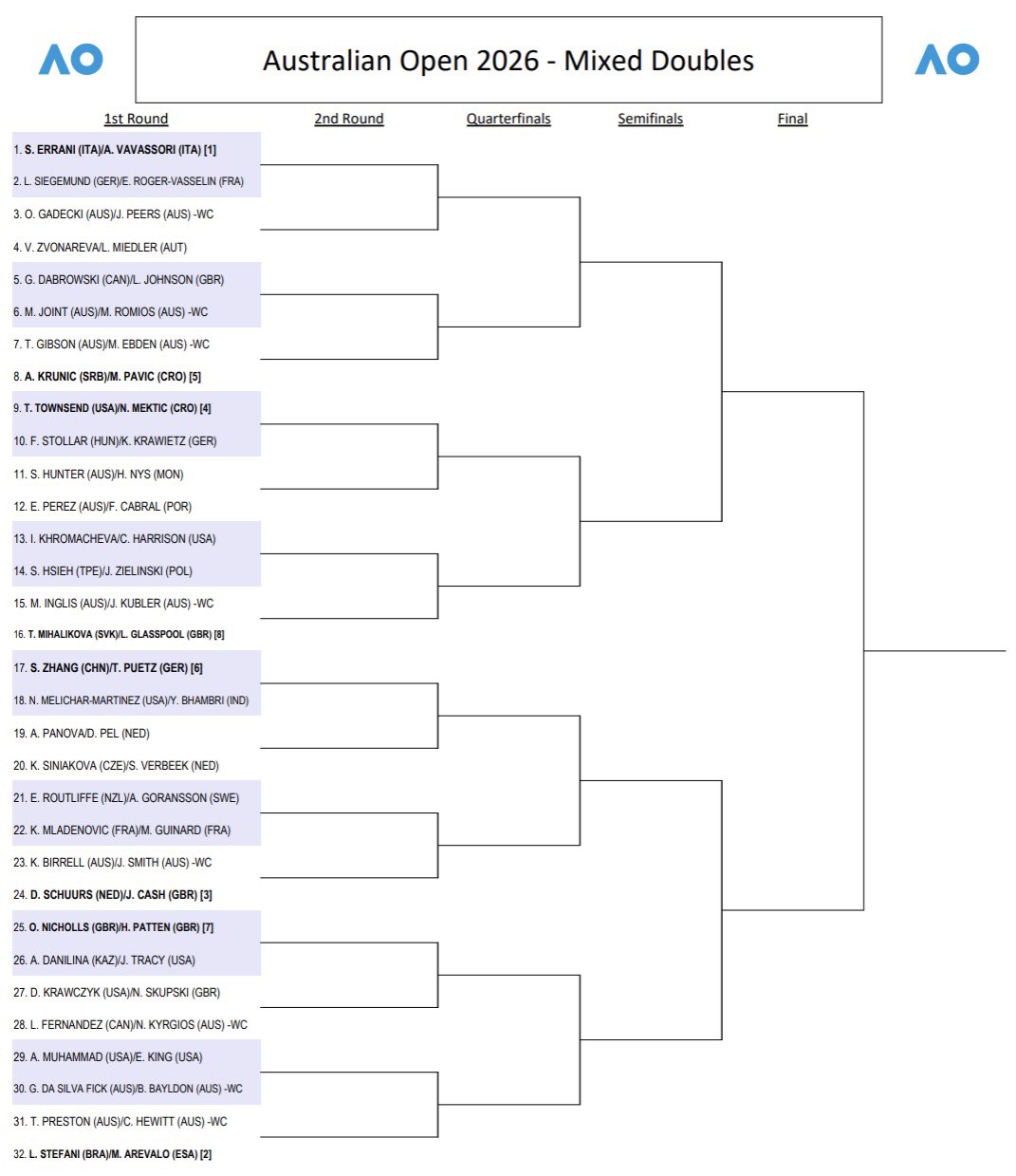 Cabral e Perez vão ter como primeiros adversários a também australiana Storm Hunter e o monegasco Hugo Nys, tal como eles especialistas de pares.