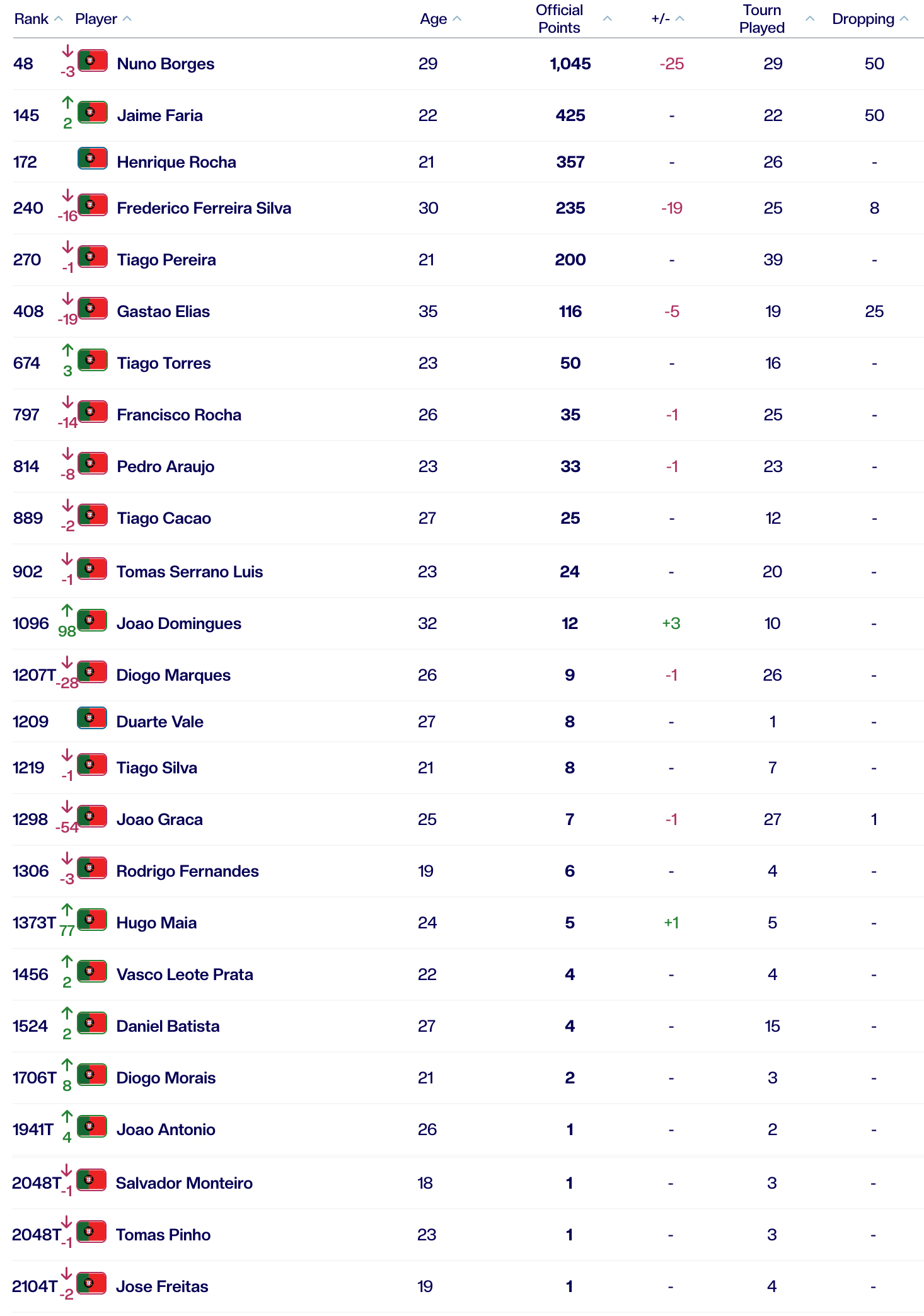 O jogador natural da Lourinhã desceu 19 posições no ranking na atualização desta segunda-feira, até ao 408.º posto, que se traduz na pior classificação desde fevereiro de 2021, quando esteve fora do top 400.