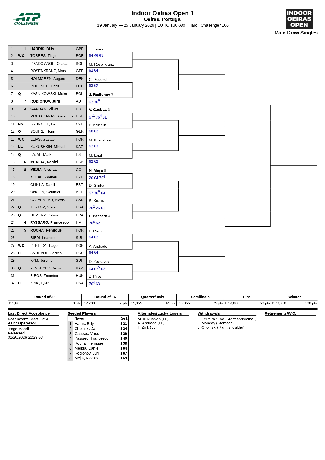 Passaro será um dos favoritos a erguer o troféu do próximo domingo, mas terá oposição digna de registo. A começar por Mikhail Kukushkin, carrasco de Elias, e Leandro Riedi, o tenista que eliminou Rocha, o quinto pré-designado. Kukushkin (antigo 39.º do ranking) é um especialista em indoor hard (um título ATP na superfície e outras duas finais) e começou 2026 com uma final e uma meia-final Challeger; Riedi arrecadou o Indoor Oeiras Open em 2024, também se dá bem com os eventos em recinto coberto rápido e é um extremamente perigoso quando as lesões se afastam.